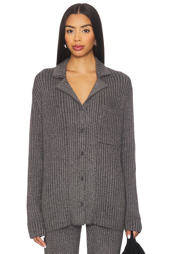 CAMISA DE LUREX CANELADA COM BOTÕES NA FRENTE CONFORTÁVEL E CHIQUE CCUL LUREX RIB BUTTON FRONT SHIRT