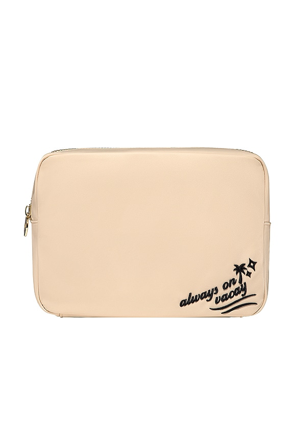 BOLSA GRANDE COM BORDADO "ALWAYS ON VACAY" "ALWAYS ON VACAY" EMBROIDERED LARGE POUCH